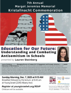 You are here: Home » Events » Upcoming Events » 7th Annual Margot Jeremias Memorial Kristallnacht Commemoration